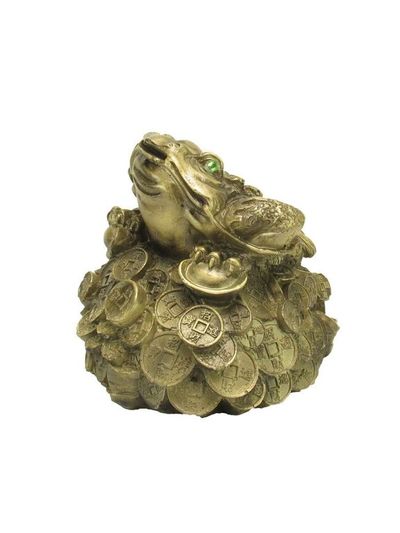 Денежная жаба это популярный восточный талисман, приносящий счастье своему владельцу. Он используется в Китае на протяжении многих лет, но у нас обрел известность совсем недавно. Трехлапая жаба по фен шуй символизирует источник богатства. По другому и быть не может, ведь традиционно фигурка лягушки восседает на горе монеток. Жаба выполнена из мраморной крошки и имеет следующие размеры Высота 11,5 см Длина 13,5 см Ширина 12 см.