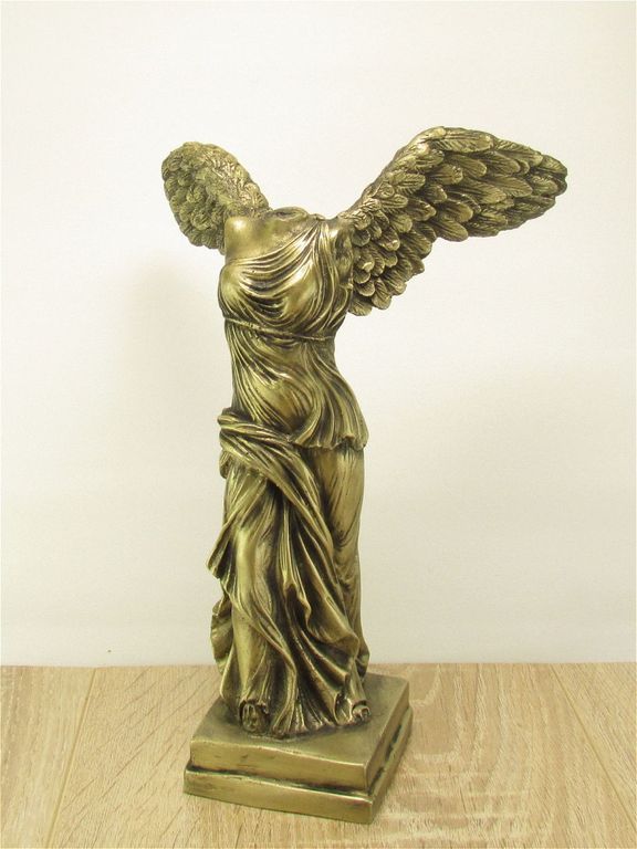 Крылатая Статуэтка Ника представляет собой мраморную эллинистическую скульптуру, изготовленную из мраморной крошки. Согласно древнегреческим мифам, Ника является богиней победы, символизирующей триумф, справедливость и силу духа. Стоит отметить, что девушка помогает каждому, кто в ней нуждается больше всех и без какой-либо корысти в душе. Статуэтка Ника, также известная как Виктория Никия, является известным античным произведением искусства. Она представляет из себя греческую богиню победы Нику, стоящую на носке и демонстрирующую грациозное движение. Статуэтка выполнена из мрамора и была создана в 2 веке до нашей эры. По своему стилю она относится к образцам эллинистического искусства. Изначально статуэтка установлена на основании в форме треугольника и служила украшением Никейской альтерной части открытого храма на Всеатонской платформе. Сейчас статуэтка Ника находится в Музее Лувра в Париже и является одной из самых известных и популярных экспонатов музея.Размеры статуэтки Длина 17 см х Ширина 13 см х Высота 23см.
